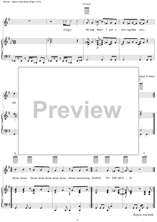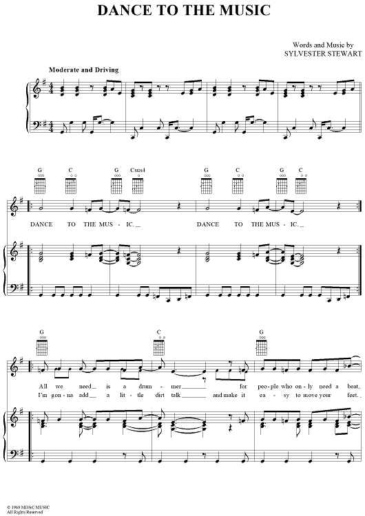 Digital Sheet Music for Dance to the Music by Sly and the Family Stone, Sly Stone scored for Piano/Vocal/Chords; id:120849