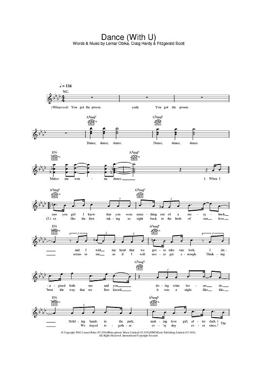 Digital Sheet Music for Dance (With U) by Fitzgerald Scott, Craig Hardy, Lemar, Lemar Obika scored for Lead Sheet; id:382903