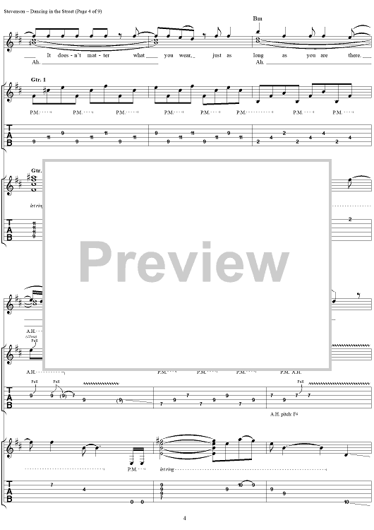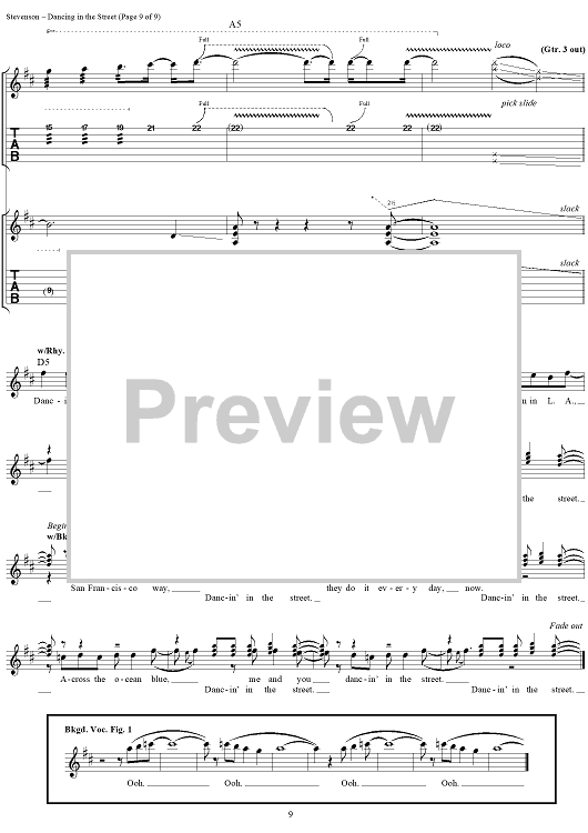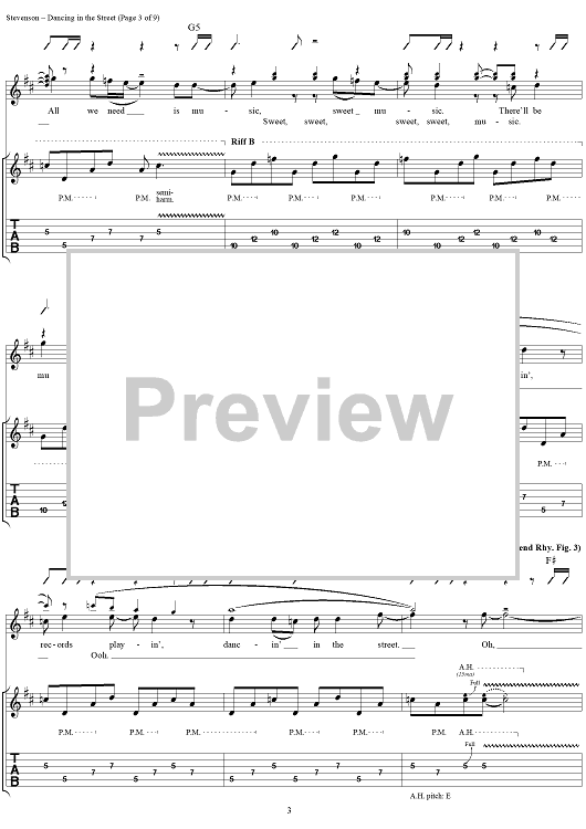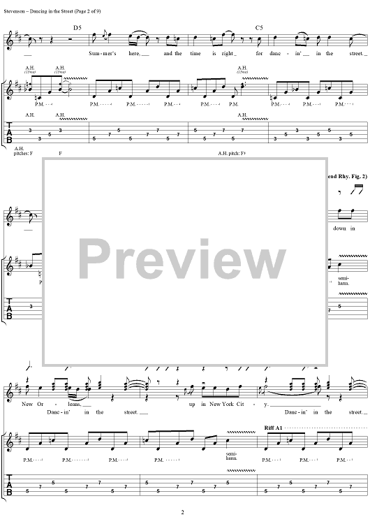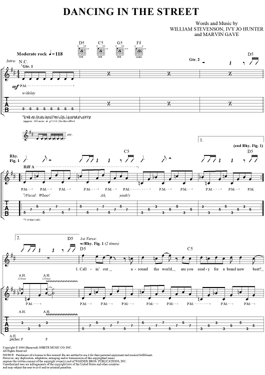 Digital Sheet Music for Dancing in the Street by Marvin Gaye, William Stevenson, Ivy Jo Hunter, Van Halen scored for Guitar Tab/Vocal; id:259128
