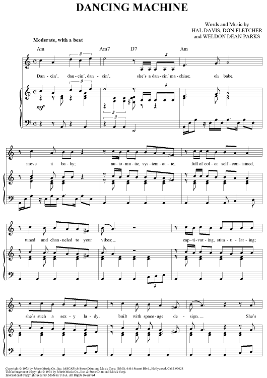 Digital Sheet Music for Dancing Machine by Hal Davis, Don Fletcher, Weldon Dean Parks, The Jackson 5 scored for Piano/Vocal/Chords; id:365409