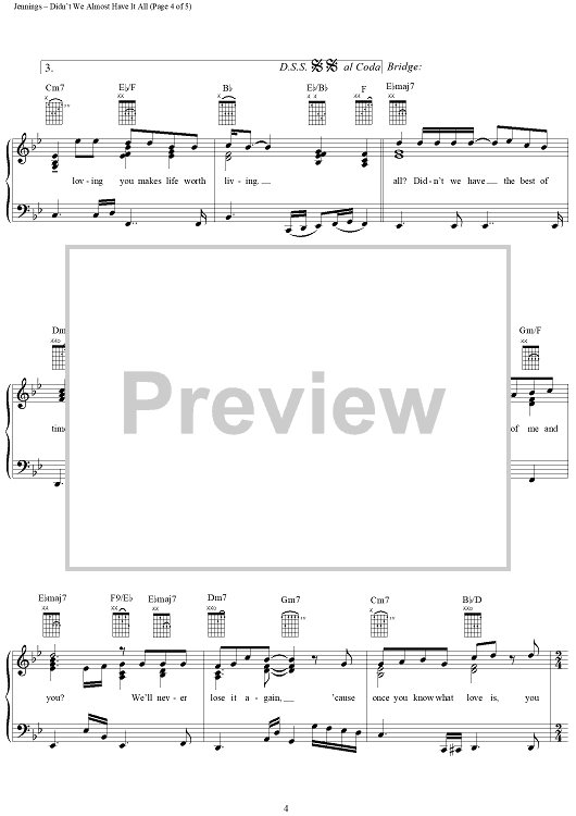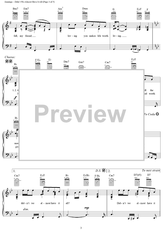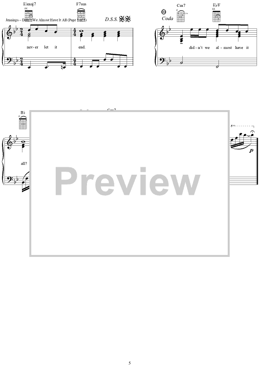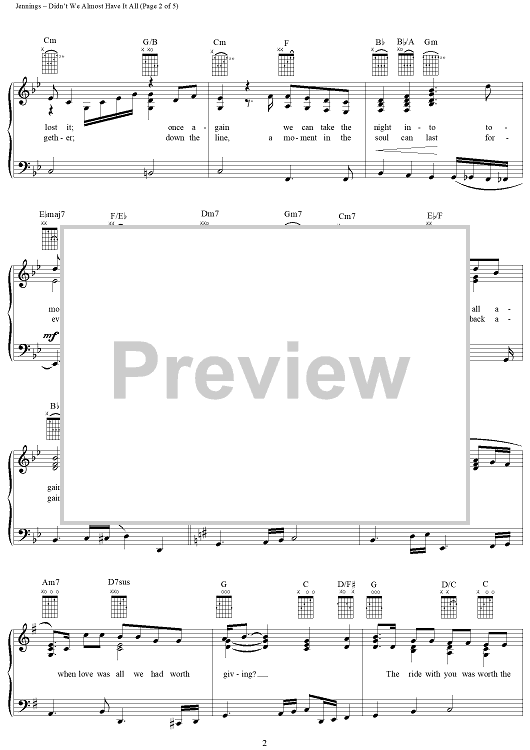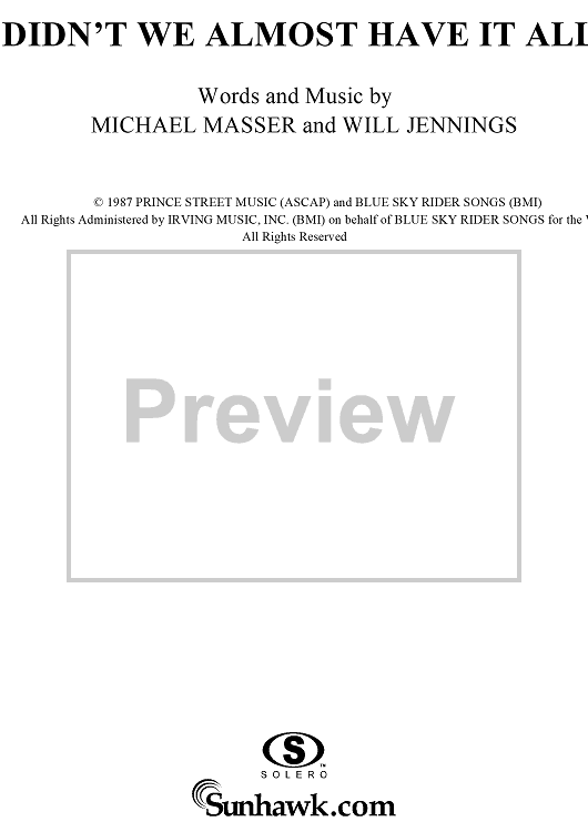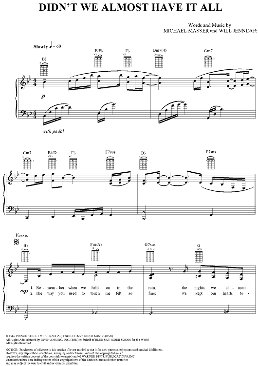 Digital Sheet Music for Didn't We Almost Have It All by Michael Masser, Will Jennings, Whitney Houston scored for Piano/Vocal/Chords; id:112492