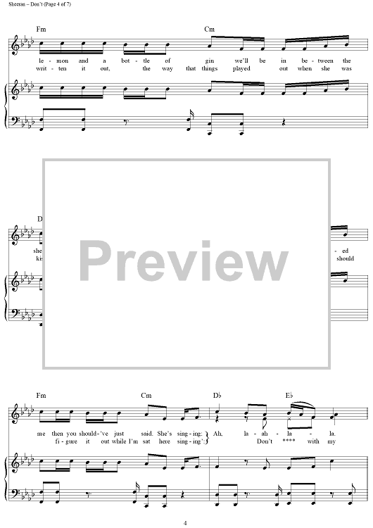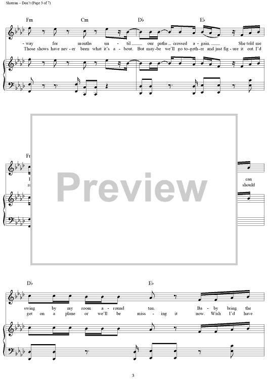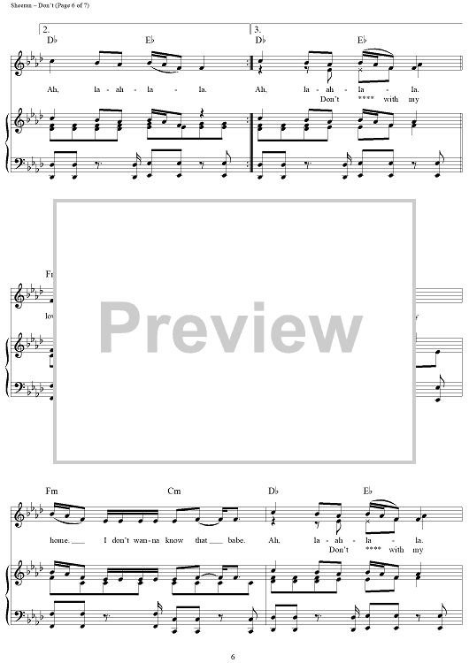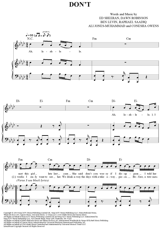 Digital Sheet Music for Don't by Ali Jones-Muhammad, Raphael Saadiq, Ed Sheeran, Dawn Robinson, Ben Levin, Conesha Owens scored for Piano/Vocal/Chords; id:445450