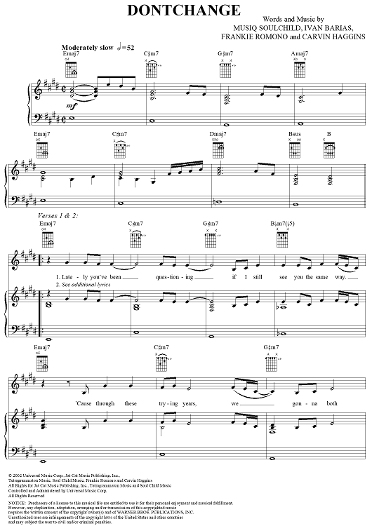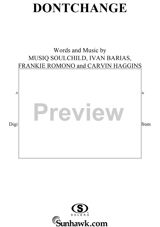 Digital Sheet Music for Dontchange by Musiq, Carvin Haggins, Ivan Barias, Musiq Soulchild, Frankie Romono scored for Piano/Vocal/Chords; id:293349