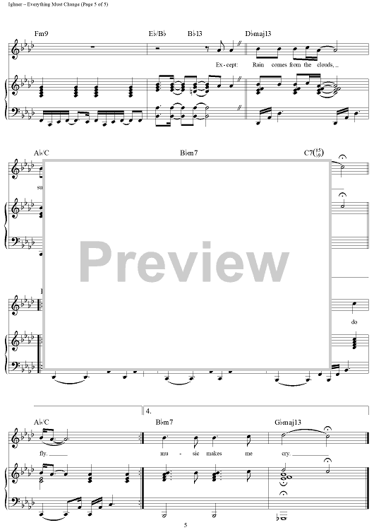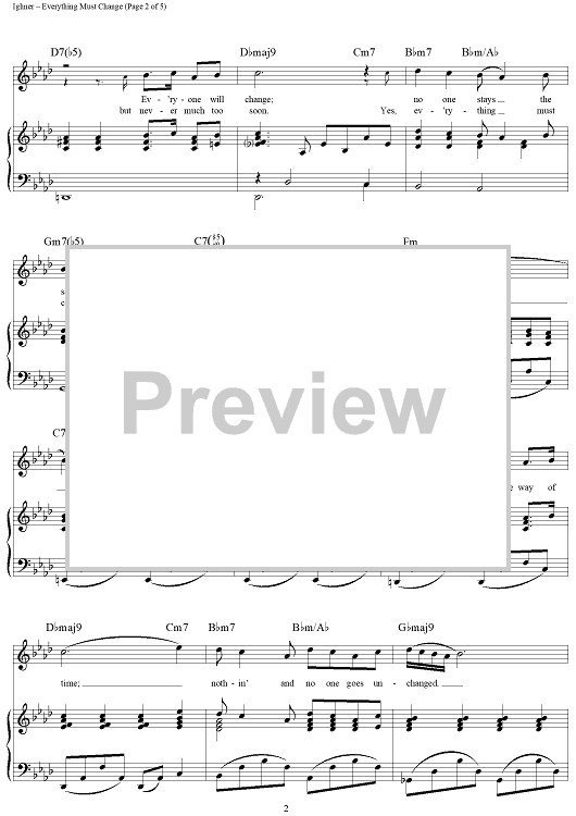 Digital Sheet Music for Everything Must Change by Bernard Ighner scored for Piano/Vocal/Chords; id:241168