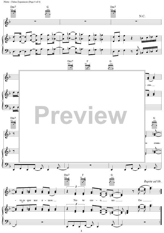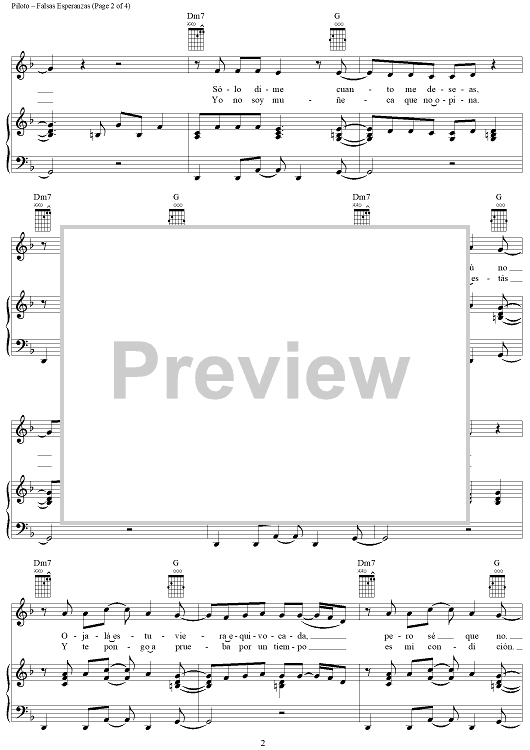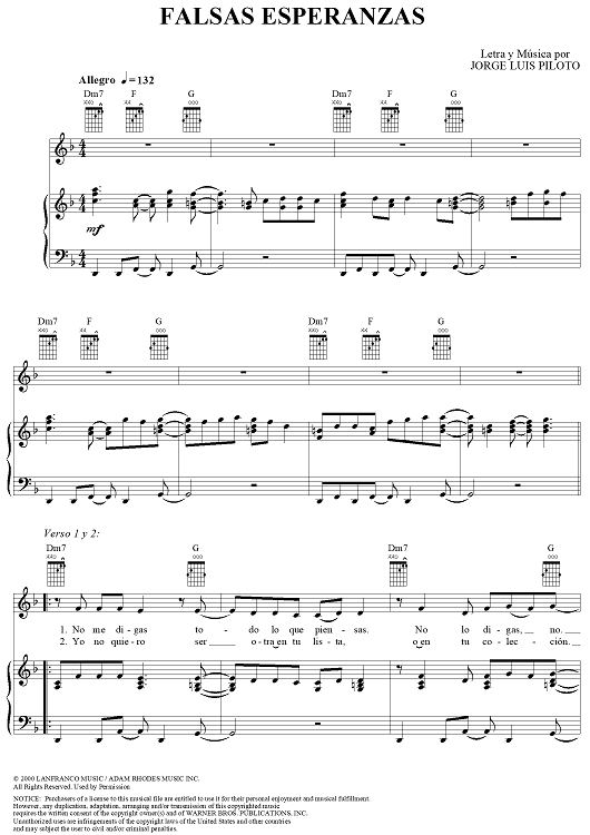 Digital Sheet Music for Falsas Esperanzas by Jorge Luis Piloto, Christina Aguilera scored for Piano/Vocal/Chords; id:285430