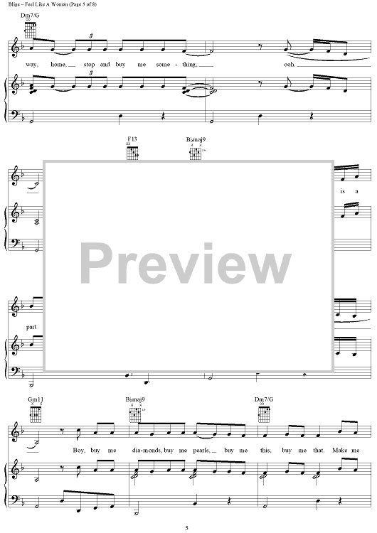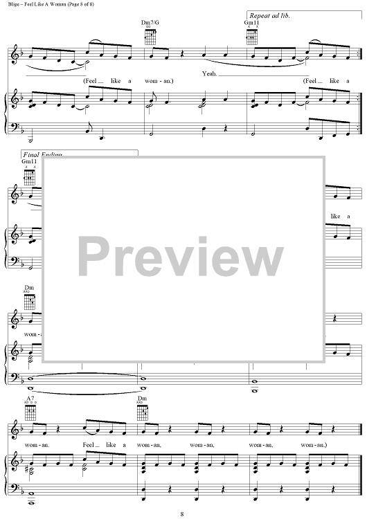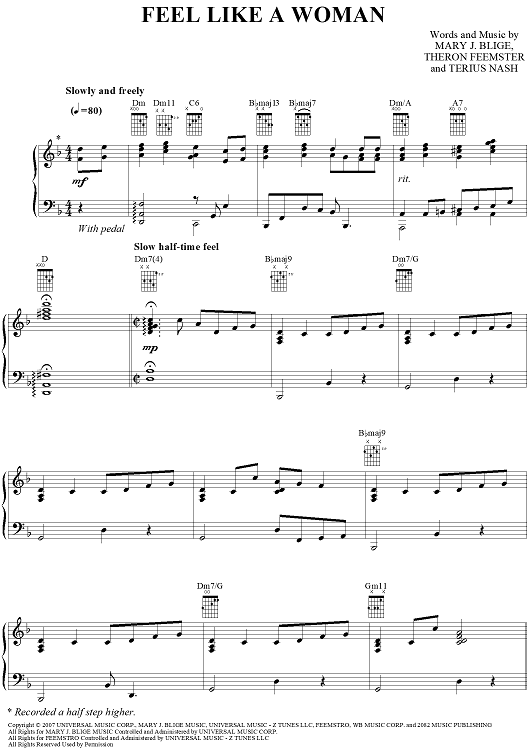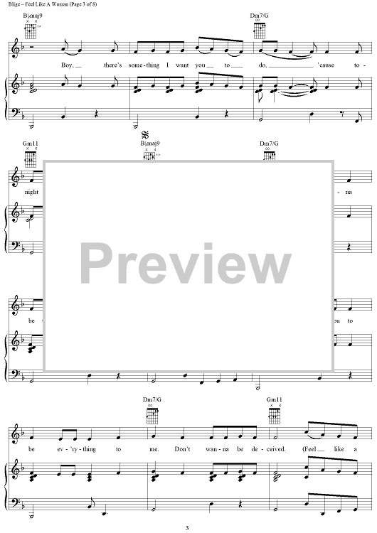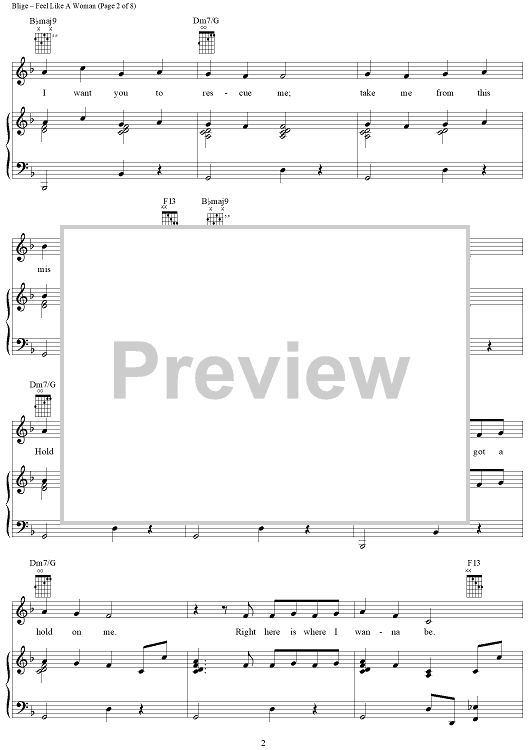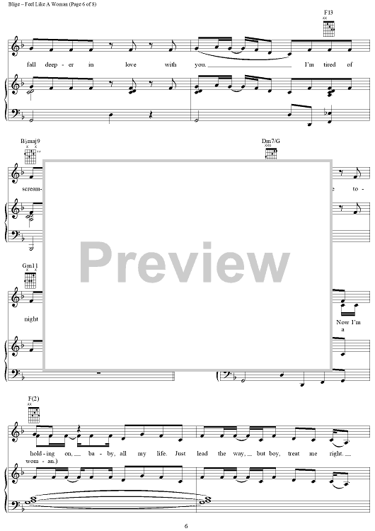 Digital Sheet Music for Feel Like A Woman by Mary J. Blige, Neff-U scored for Piano/Vocal/Chords; id:409738