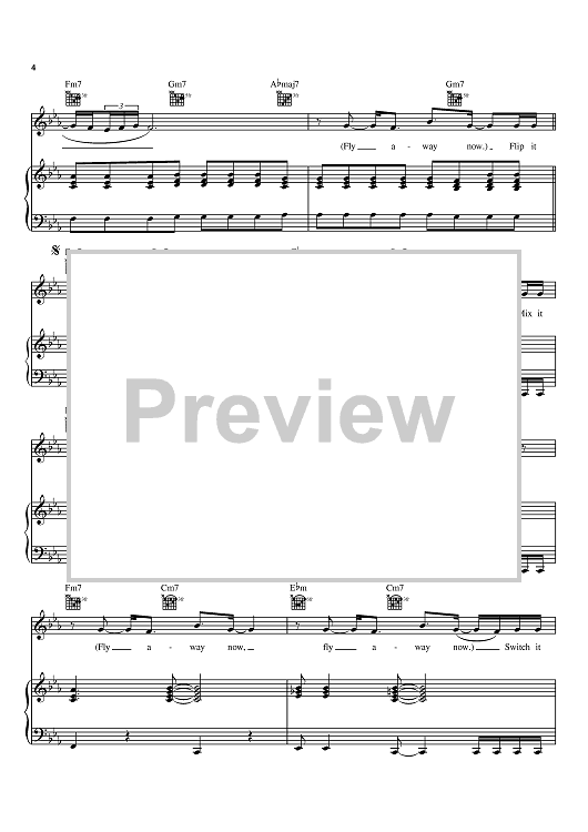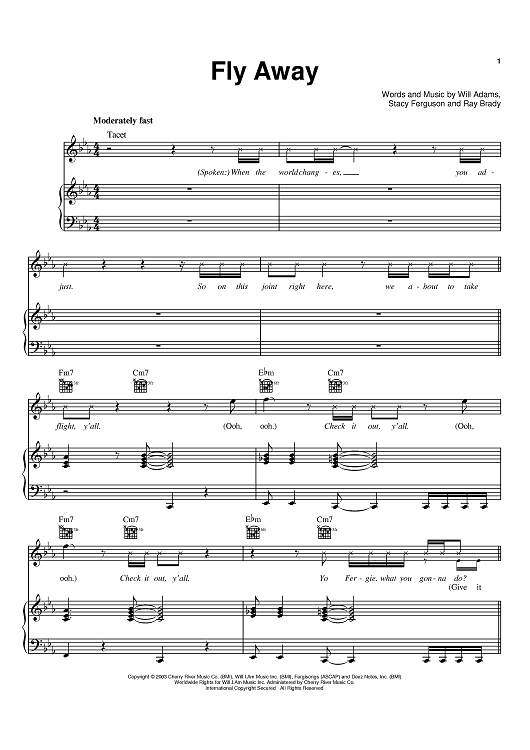 Digital Sheet Music for Fly Away by Fergie, will.i.am, Black Eyed Peas, Ray Brady scored for Piano/Vocal/Chords; id:373643