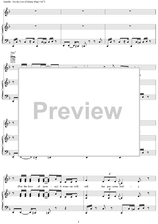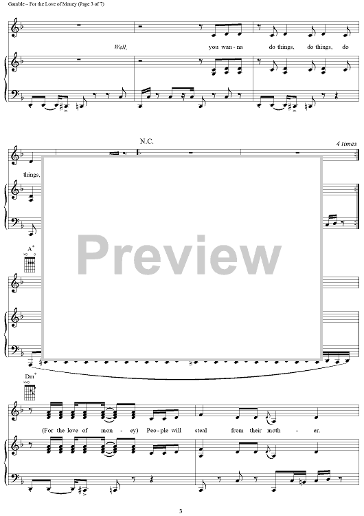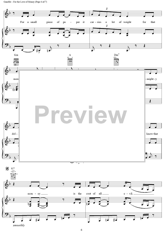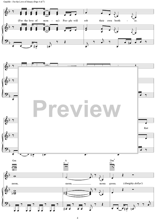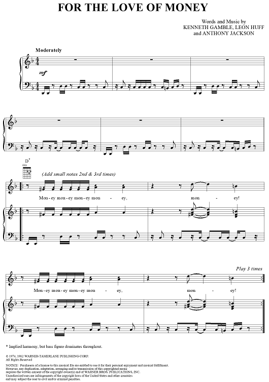 Digital Sheet Music for For the Love of Money by Leon Huff, Kenneth Gamble, Anthony Jackson, The O'Jays scored for Piano/Vocal/Chords; id:321270