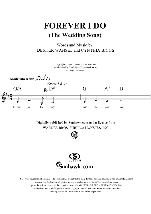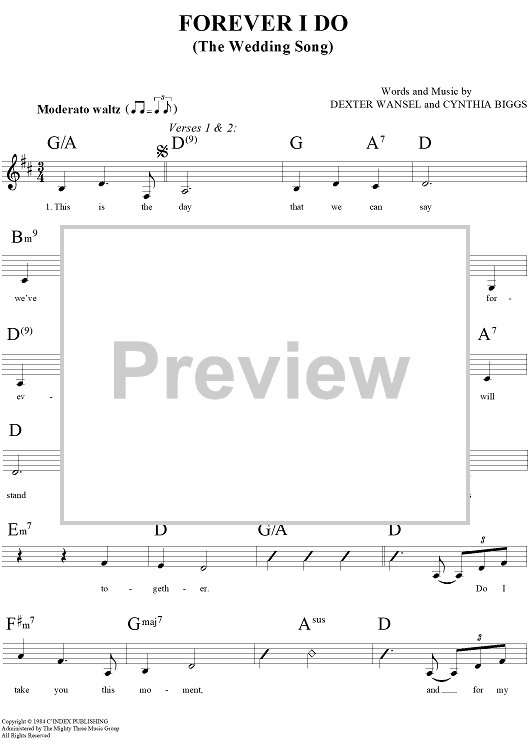 Digital Sheet Music for Forever I Do (The Wedding Song) by Lou Rawls, Cynthia Biggs, Dexter Wansel scored for Lead Sheet; id:154833