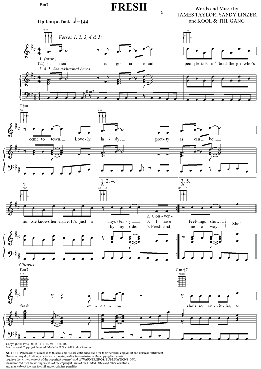Digital Sheet Music for Fresh by Sandy Linzer, J.T. Taylor, Kool & The Gang scored for Piano/Vocal/Chords; id:321269