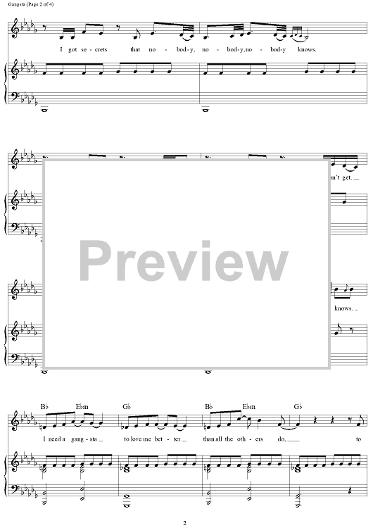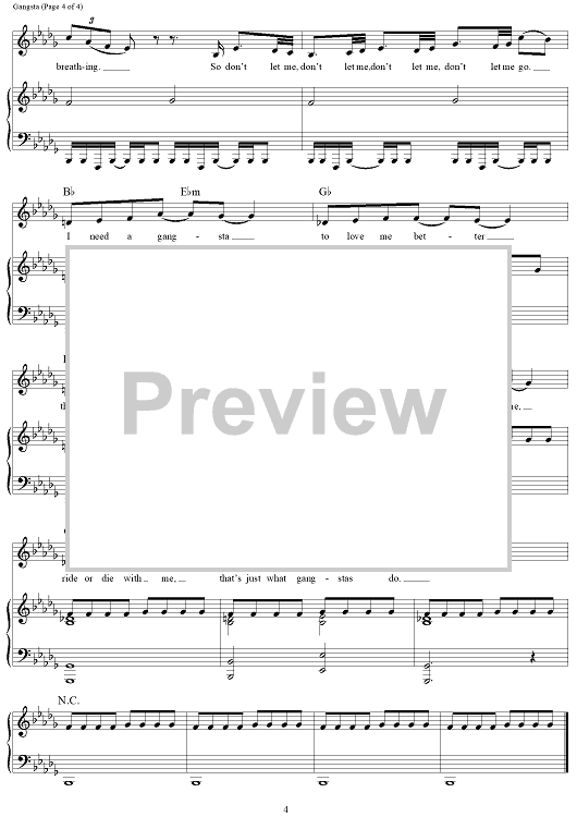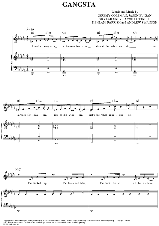 Digital Sheet Music for Gangsta by Jacob Luttrell, Skylar Grey, Jason Evigan, Kehlani, Jeremy Coleman, Kehlani Parrish, Andrew Swanson scored for Piano/Vocal/Chords; id:461237