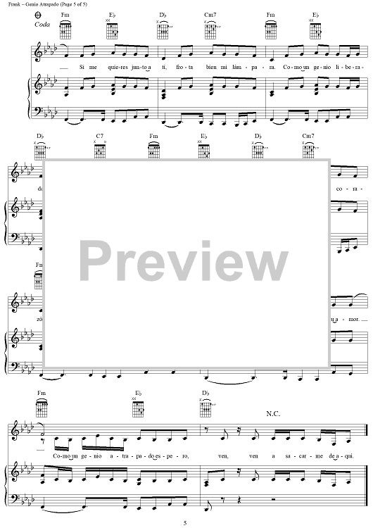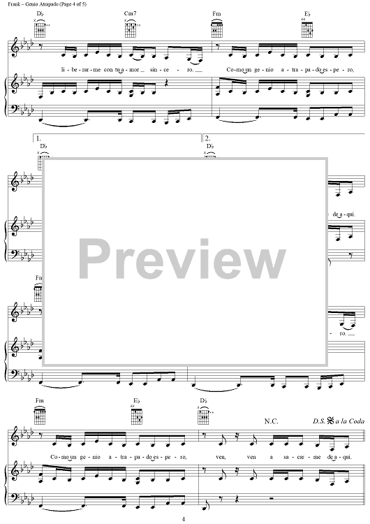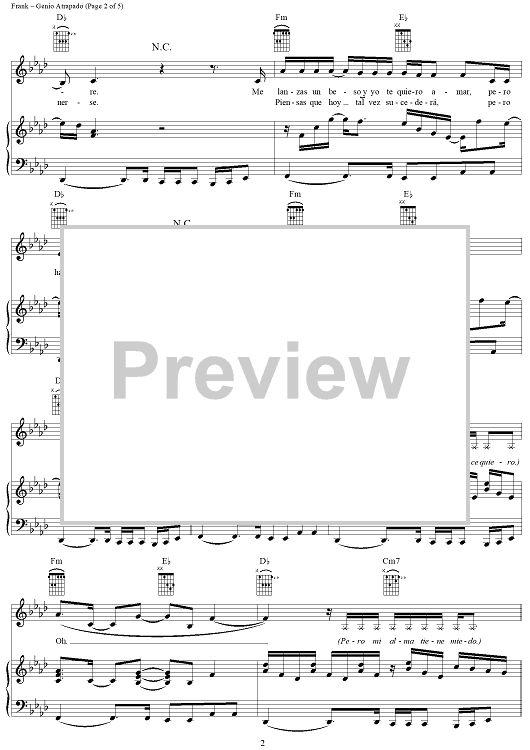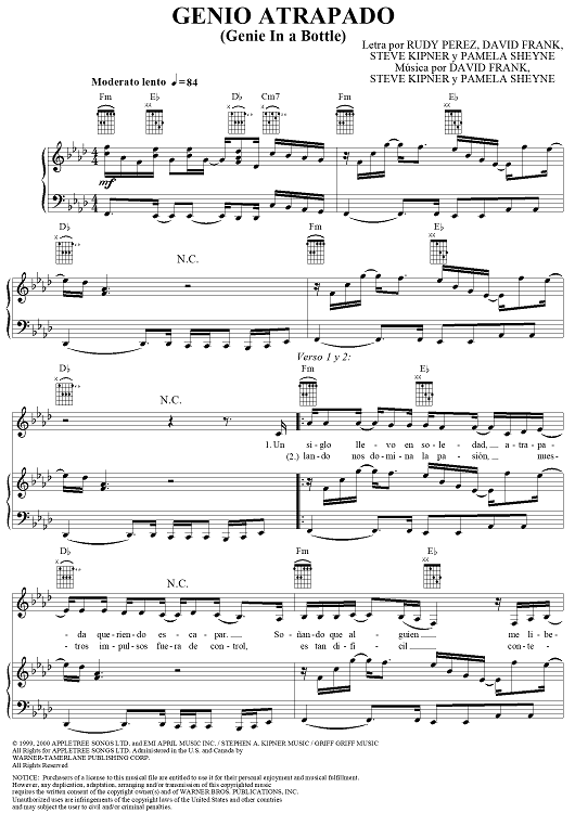 Digital Sheet Music for Genio Atrapado by David Frank, Steve Kipner, Pam Sheyne, Christina Aguilera scored for Piano/Vocal/Chords; id:285428