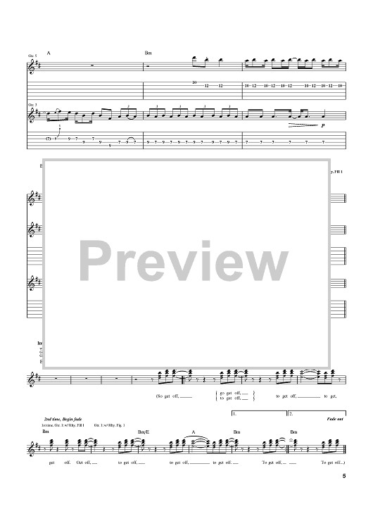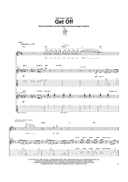 Digital Sheet Music for Get Off by Carl Driggs, Foxy, Ismael Angel Ledesma scored for Guitar Tab; id:373550