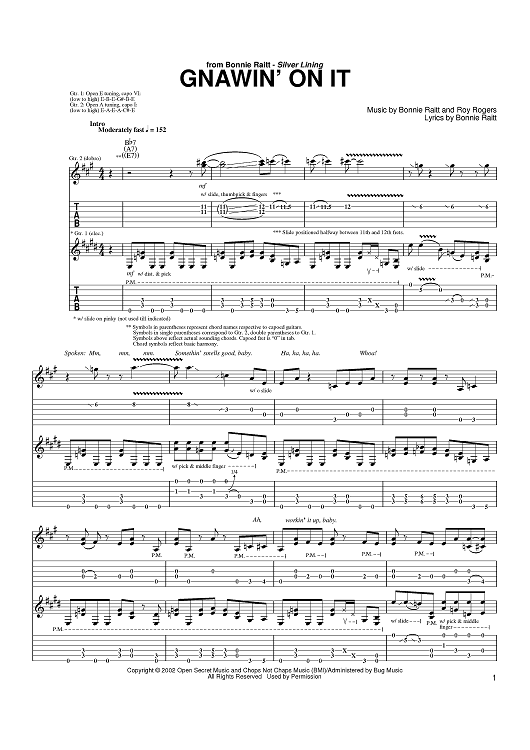 Digital Sheet Music for Gnawin' On It by Roy Rogers, Bonnie Raitt scored for Guitar Tab; id:369227
