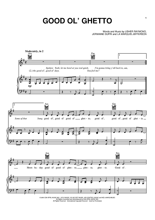 Digital Sheet Music for Good Ol' Ghetto by Usher, Jermaine Dupri, La Marquis Jefferson scored for Piano/Vocal/Chords; id:368934