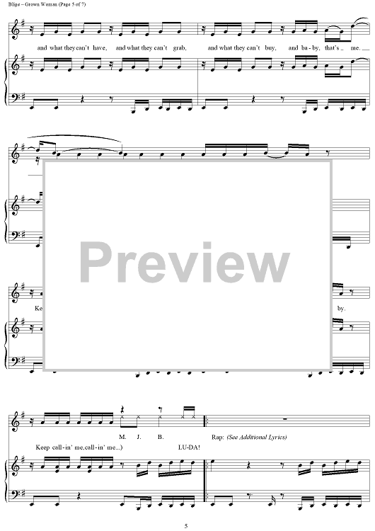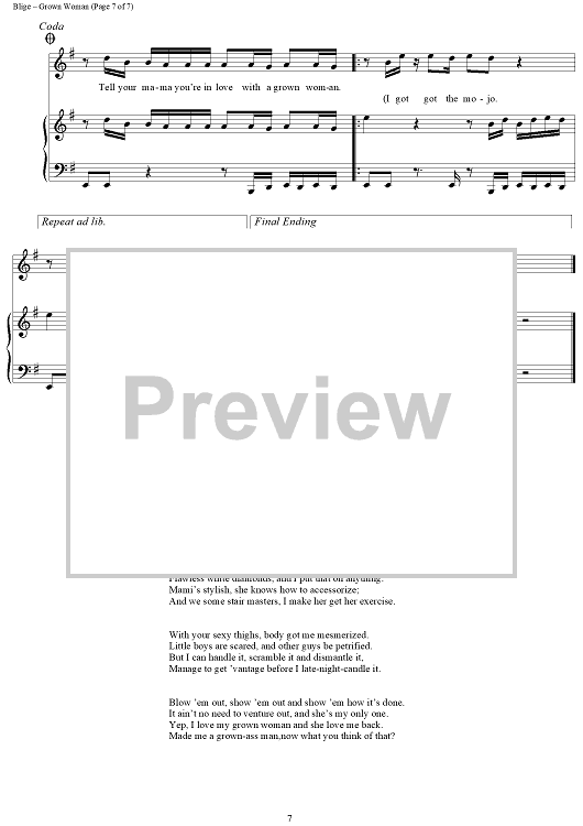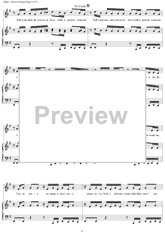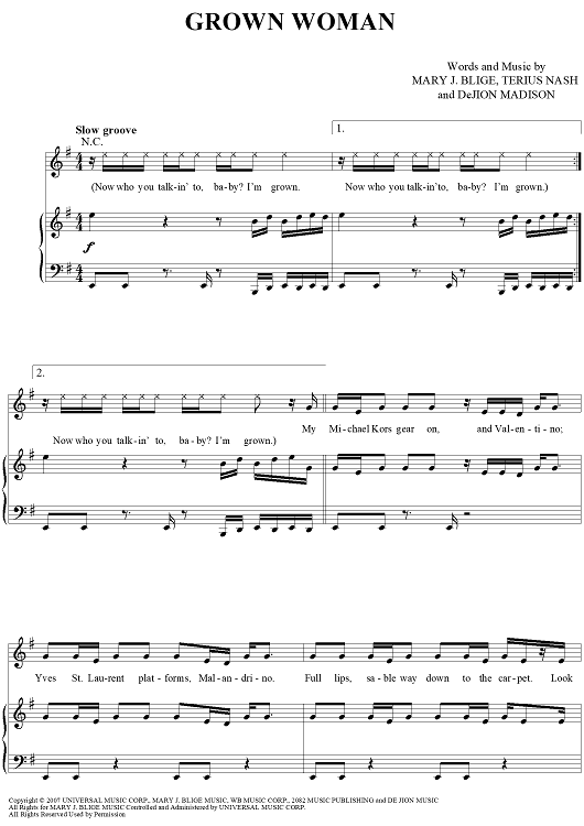 Digital Sheet Music for Grown Woman by Mary J. Blige, Terius Nash scored for Piano/Vocal/Chords; id:409894