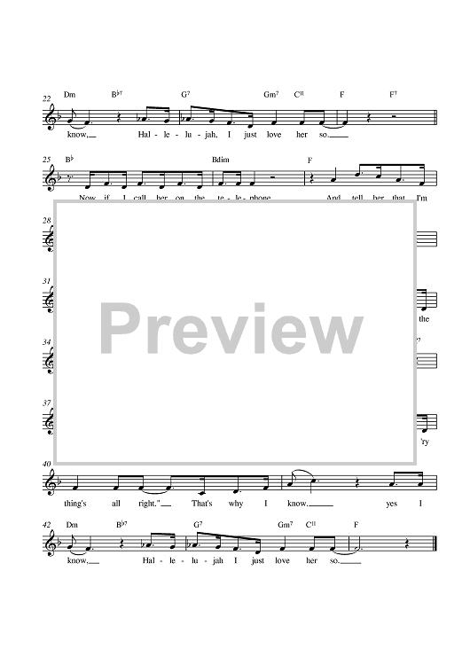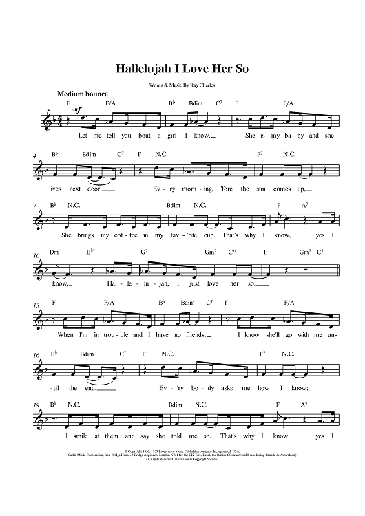 Digital Sheet Music for Hallelujah I Love Her So by Ray Charles scored for Lead Sheet; id:380935
