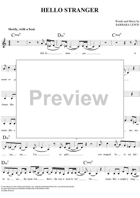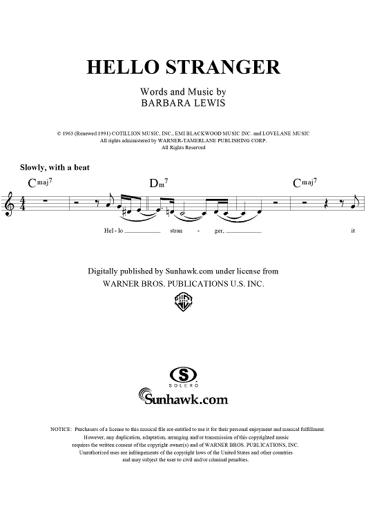 "Hello Stranger" Sheet Music by Barbara Lewis