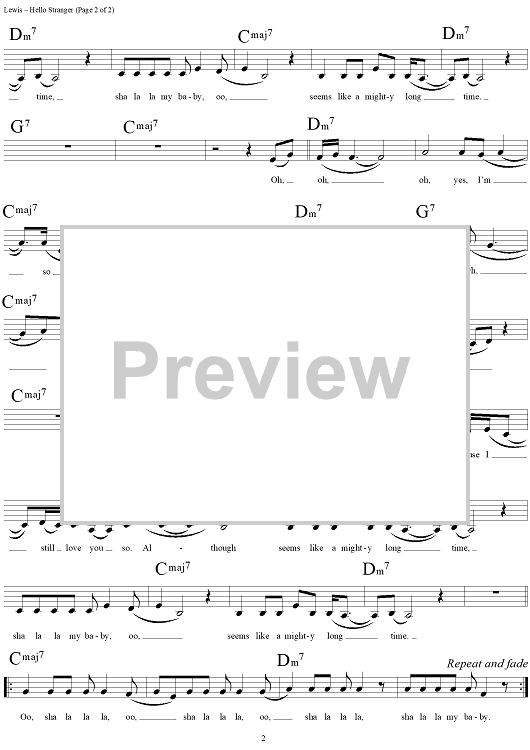 Digital Sheet Music for Hello Stranger by Barbara Lewis, Yvonne Elliman scored for Lead Sheet; id:189418