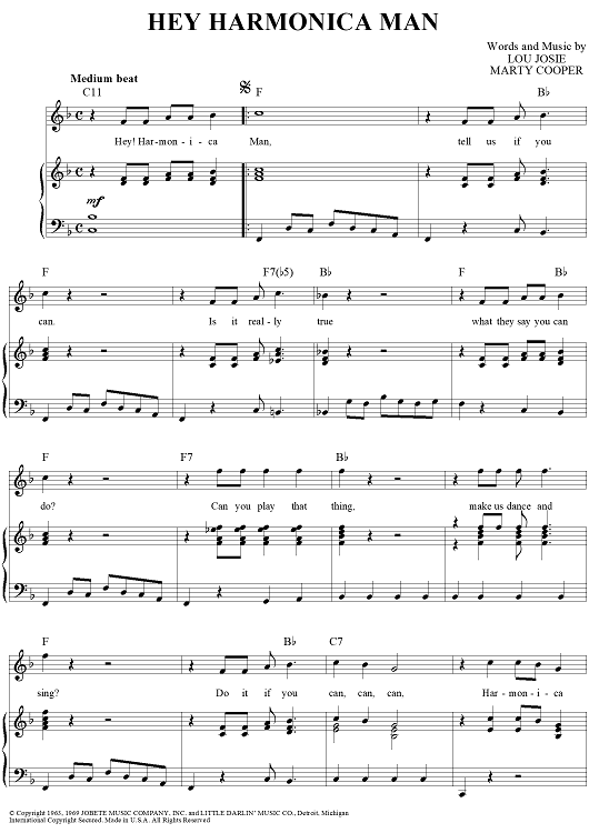 Digital Sheet Music for Hey! Harmonica Man by Stevie Wonder, Marty Cooper, Lou Josie scored for Piano/Vocal/Chords; id:366748
