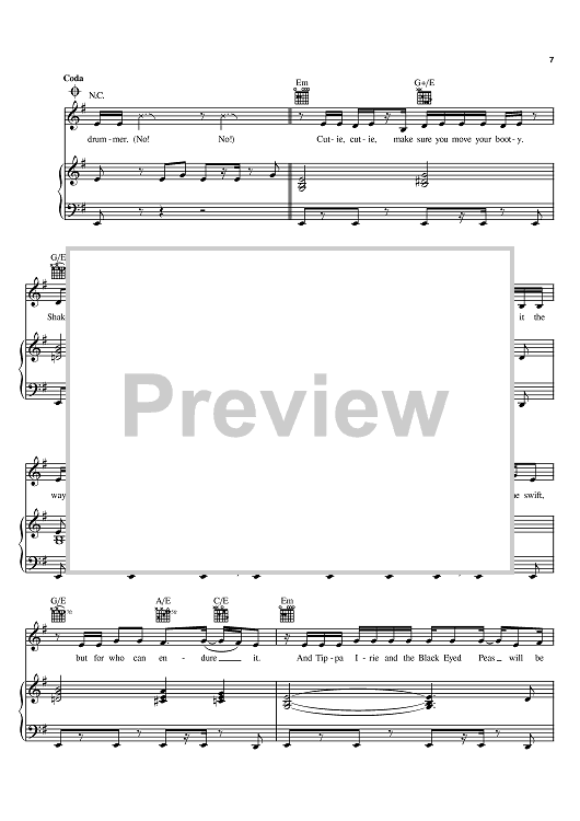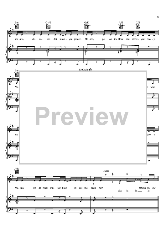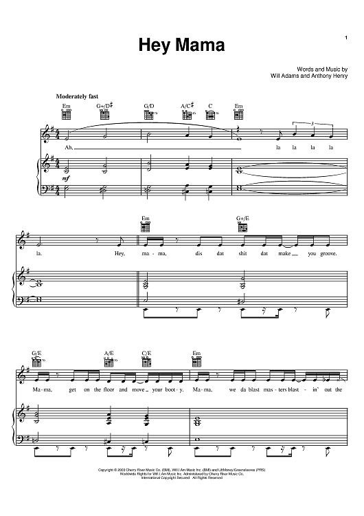 Digital Sheet Music for Hey Mama by will.i.am, Black Eyed Peas, Anthony Henry scored for Piano/Vocal/Chords; id:373645