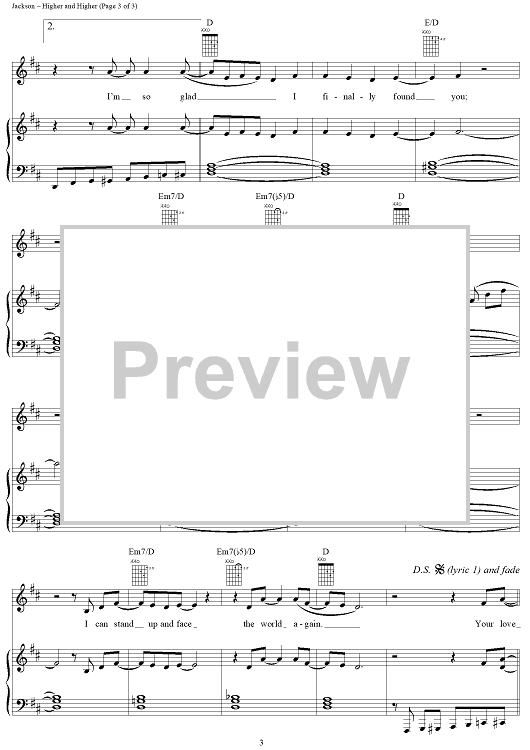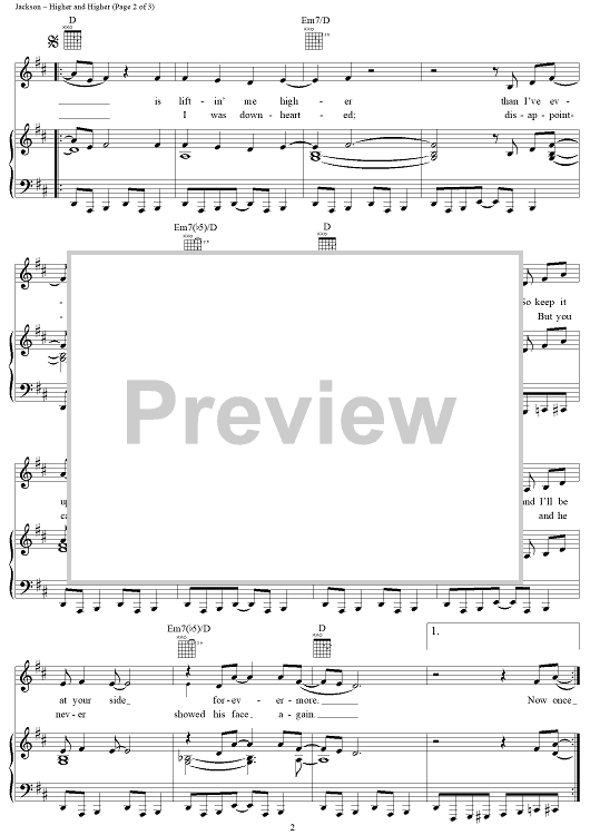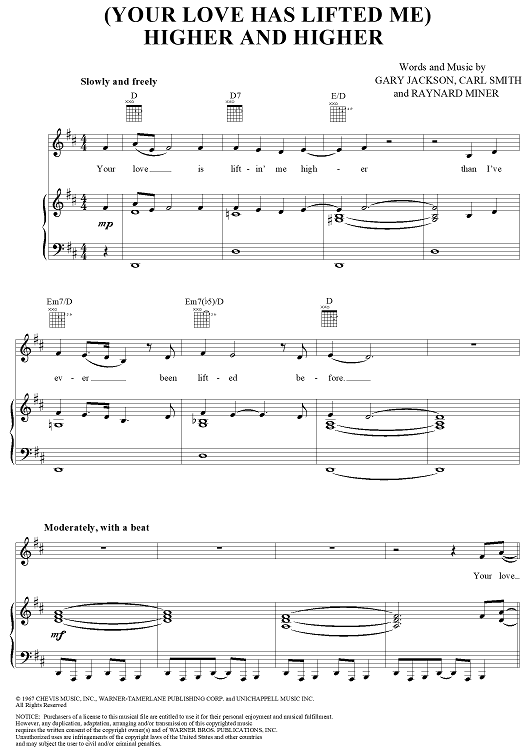 Digital Sheet Music for Higher and Higher by Otis Redding, Jackie Wilson, Rita Coolidge, Carl Smith, Raynard Miner, Gary Jackson scored for Piano/Vocal/Chords; id:116502