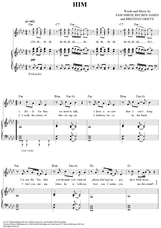 Digital Sheet Music for Him by Sam Smith, Reuben James, Brendan Grieve scored for Piano/Vocal/Chords; id:465814