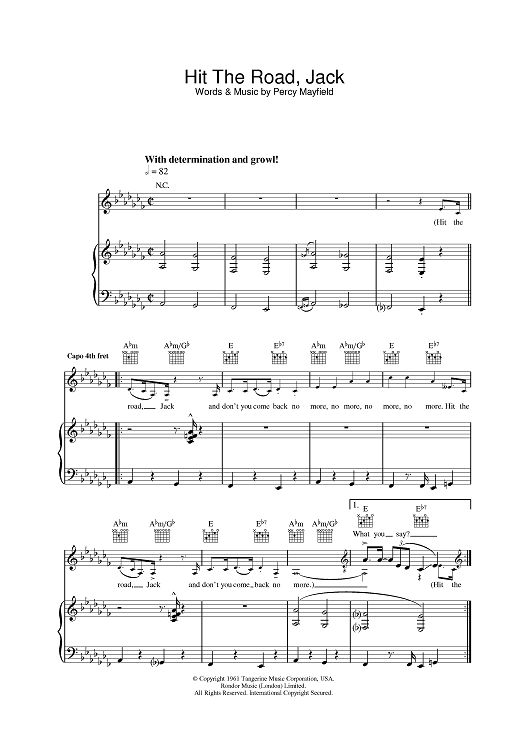 Digital Sheet Music for Hit The Road Jack by Percy Mayfield, Ray Charles scored for Piano/Vocal/Chords; id:383228