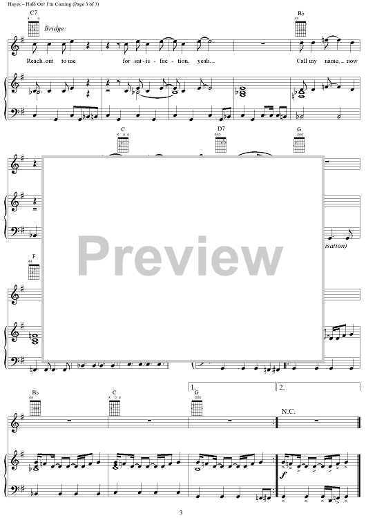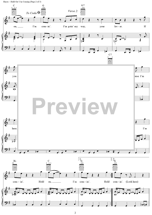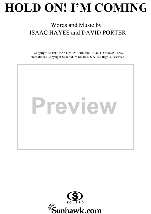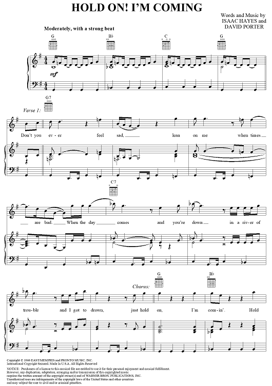 Digital Sheet Music for Hold On! I'm Comin' by Isaac Hayes, David Porter, Sam and Dave scored for Piano/Vocal/Chords; id:120800