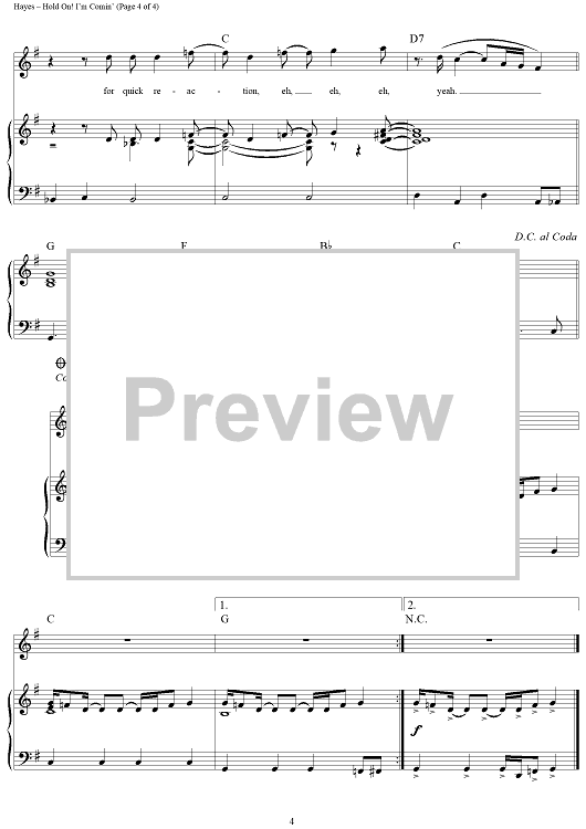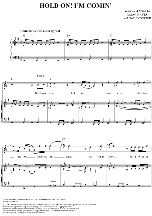 Digital Sheet Music for Hold On! I'm Comin' by Isaac Hayes, Sam and Dave, Cole Porter scored for Piano/Vocal/Chords; id:289848