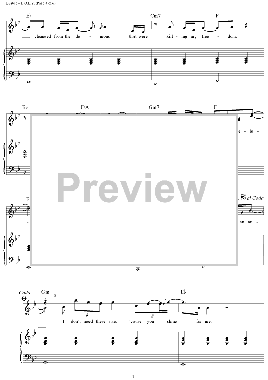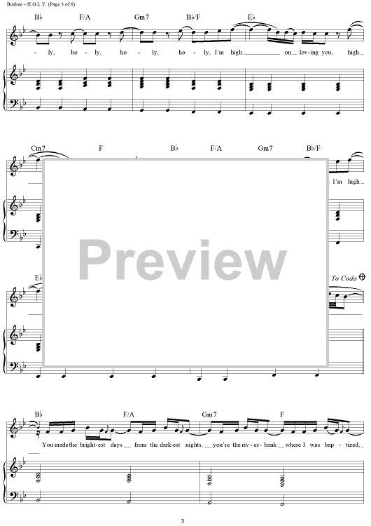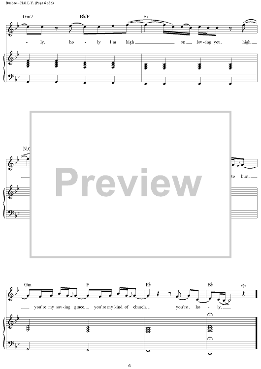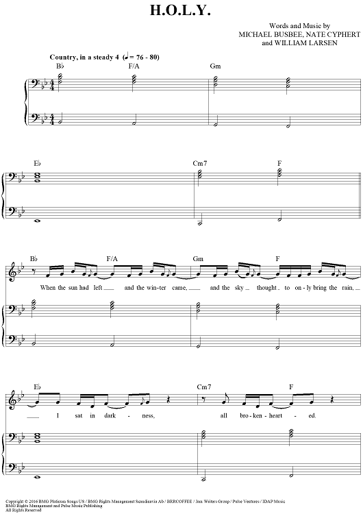 Digital Sheet Music for H.O.L.Y. by Busbee, Florida Georgia Line, William Wiik Larsen, Nate Cyphert scored for Piano/Vocal/Chords; id:457718