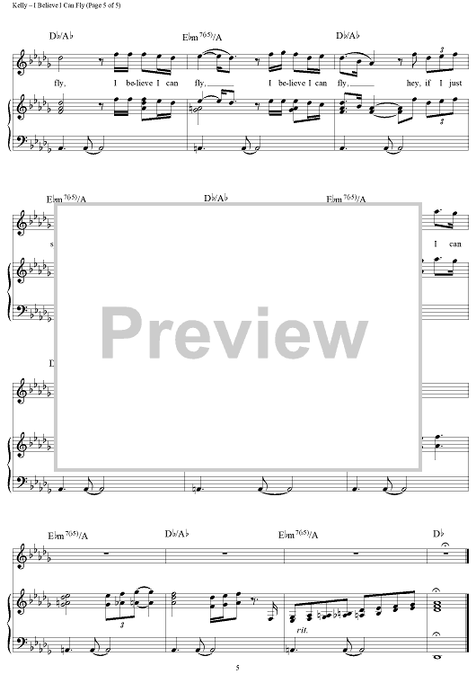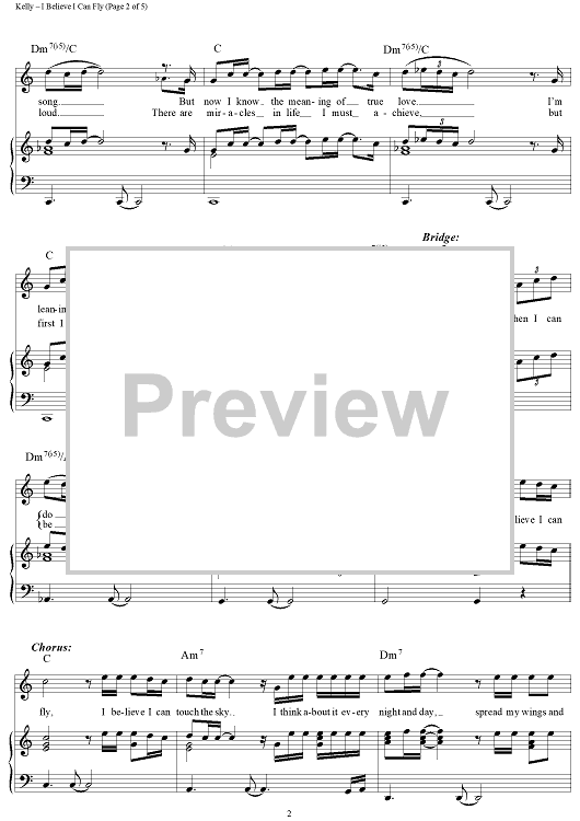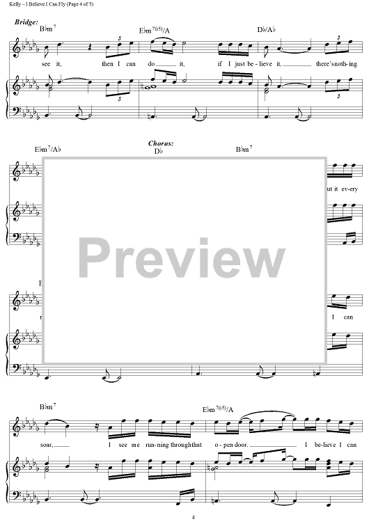 Digital Sheet Music for I Believe I Can Fly by R. Kelly scored for Piano/Vocal/Chords; id:108907
