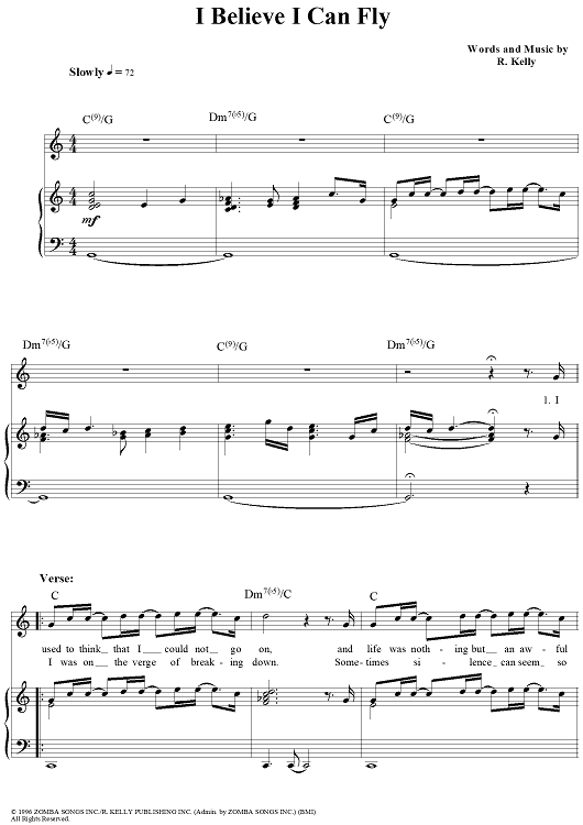 "I Believe I Can Fly" Sheet Music by R. Kelly
