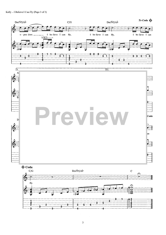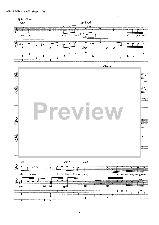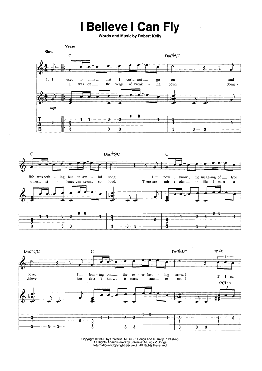 Digital Sheet Music for I Believe I Can Fly by R. Kelly scored for Guitar Tab/Vocal/Chords; id:442959