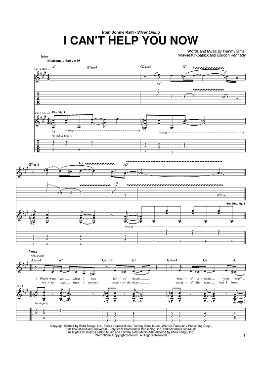 Digital Sheet Music for I Can't Help You Now by Tommy Sims, Wayne Kirkpatrick, Bonnie Raitt, Gordon Kennedy scored for Guitar Tab; id:369226