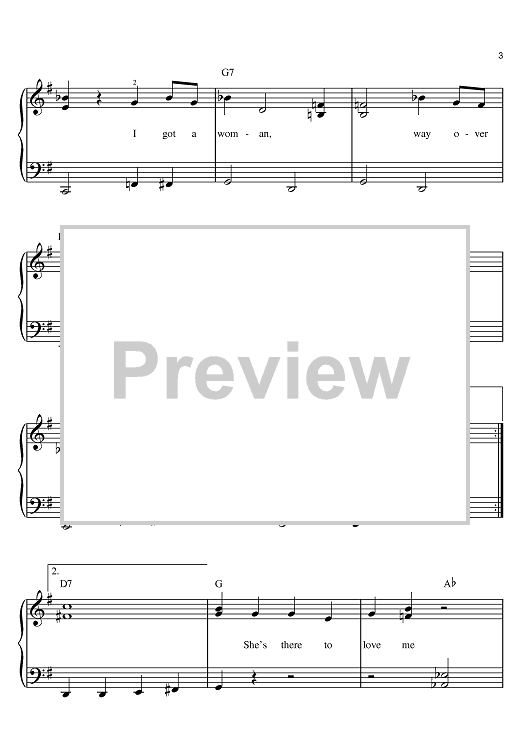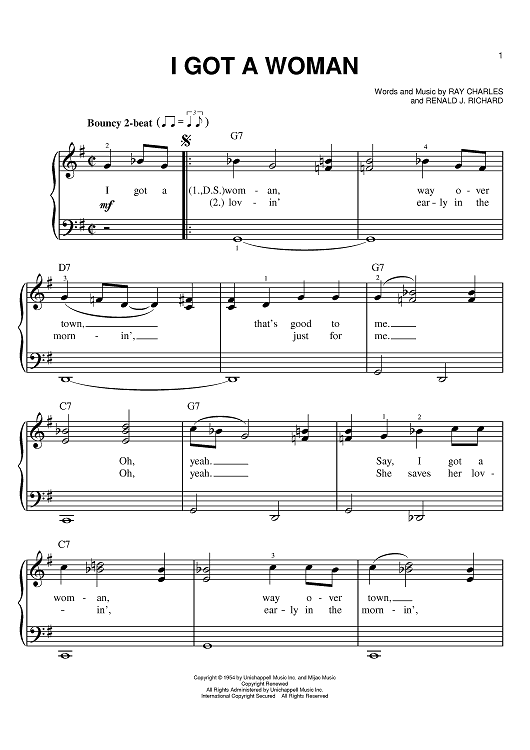 Digital Sheet Music for I Got A Woman by Elvis Presley, Ray Charles, Jimmy McGriff, Renald J. Richard scored for Easy Piano; id:388537