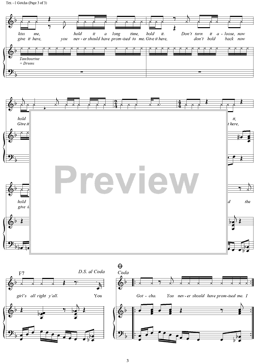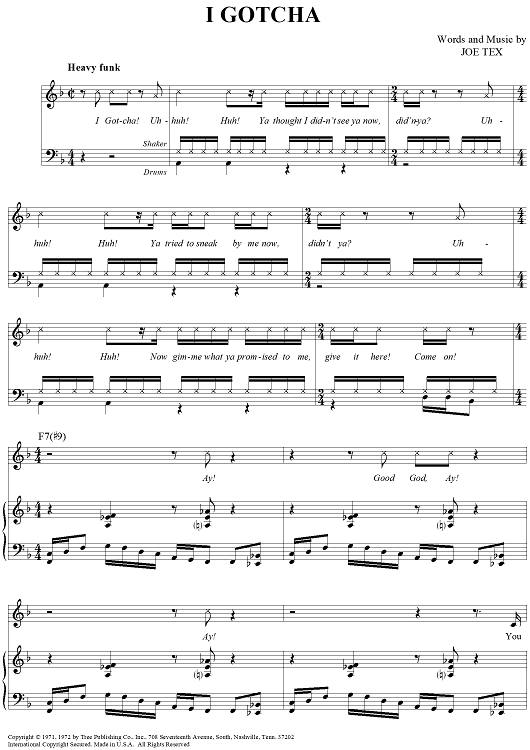 Digital Sheet Music for I Gotcha by Joe Tex scored for Piano/Vocal/Chords; id:364318