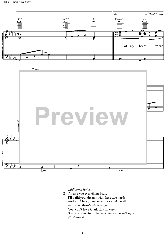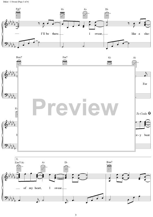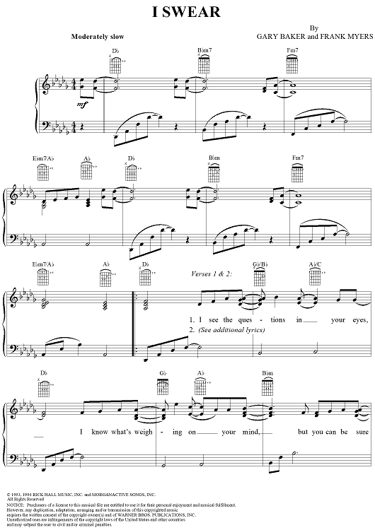 Digital Sheet Music for I Swear by Gary Baker, Frank Myers, John Michael Montgomery, All-4-One scored for Piano/Vocal/Chords; id:109780
