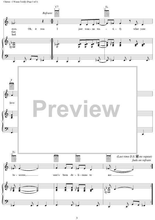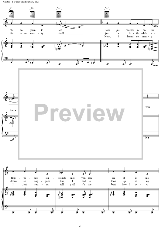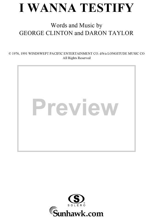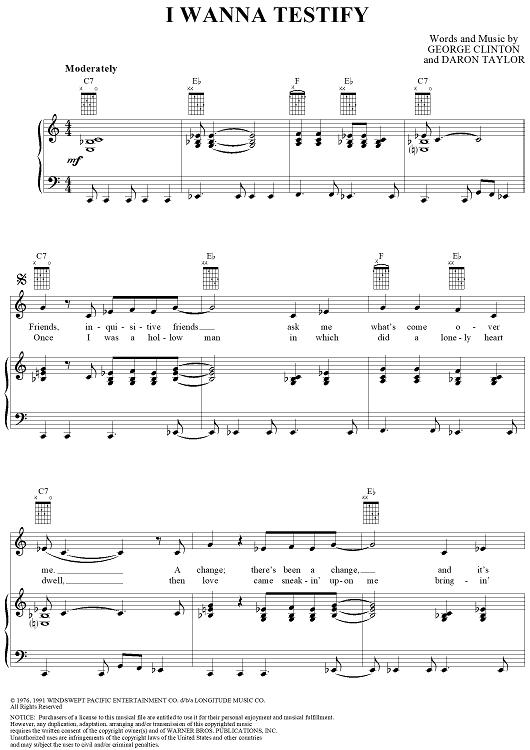 Digital Sheet Music for I Wanna Testify by Johnnie Taylor, George Clinton, Daron Taylor, Parliament scored for Piano/Vocal/Chords; id:116055