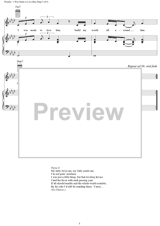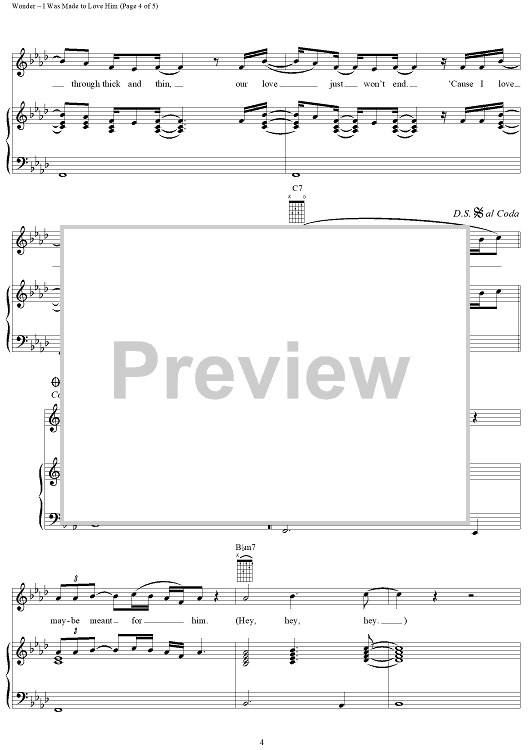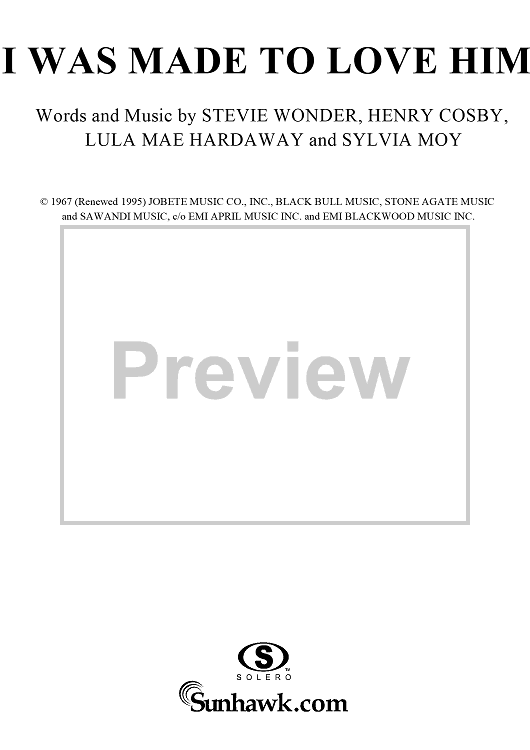 Digital Sheet Music for I Was Made to Love Him by Stevie Wonder, Lula Mae Hardaway, Henry Cosby, Sylvia Moy, Whitney Houston scored for Piano/Vocal/Chords; id:263470