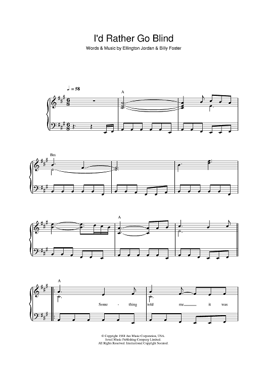 Digital Sheet Music for I'd Rather Go Blind by Etta James, Ellington Jordan, Billy Foster scored for Piano/Vocal/Chords; id:396793