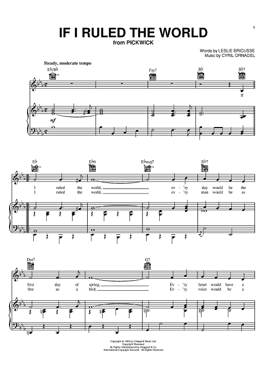 Digital Sheet Music for If I Ruled The World by James Brown, Leslie Bricusse, Tony Bennett, Tom Jones, Cyril Ornadel, Sammy Davis Jr. scored for Piano/Vocal/Chords; id:379467