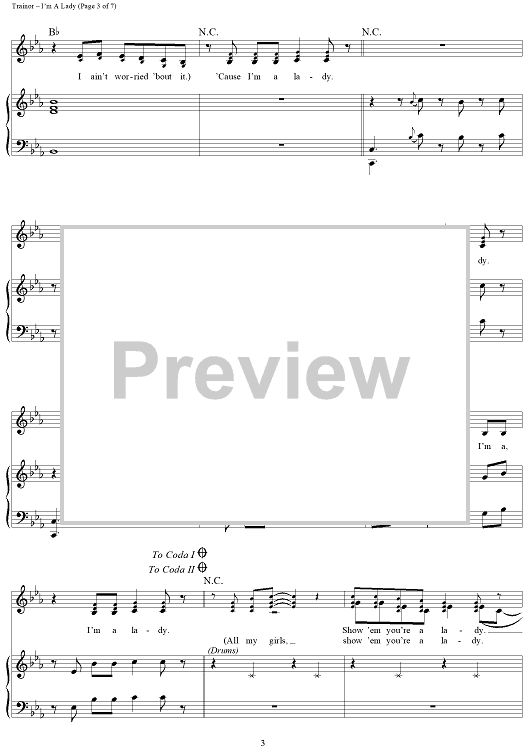 Digital Sheet Music for I'm A Lady by Meghan Trainor, Martin Renea scored for Piano/Vocal/Chords; id:464097