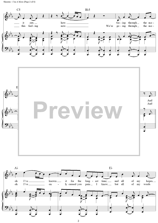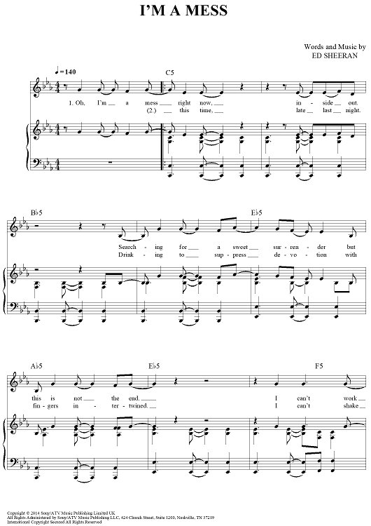 Digital Sheet Music for I'm A Mess by Ed Sheeran scored for Piano/Vocal/Chords; id:445452