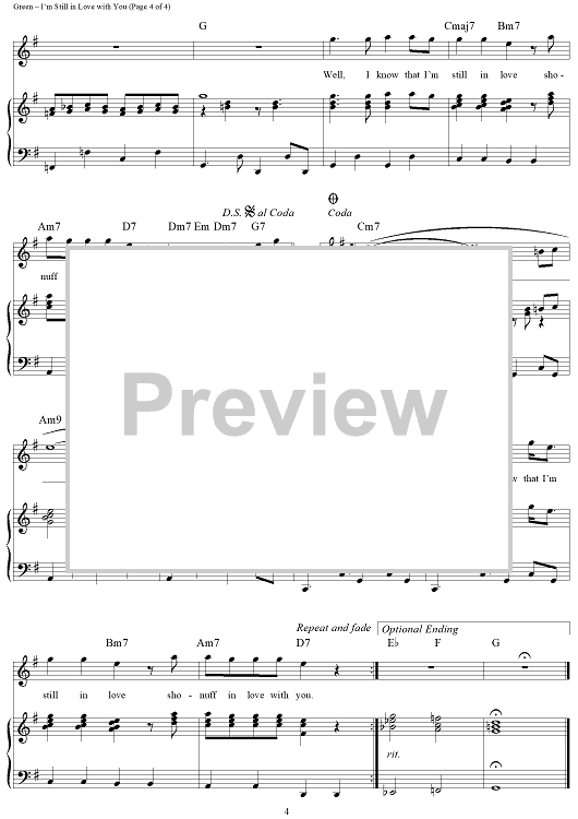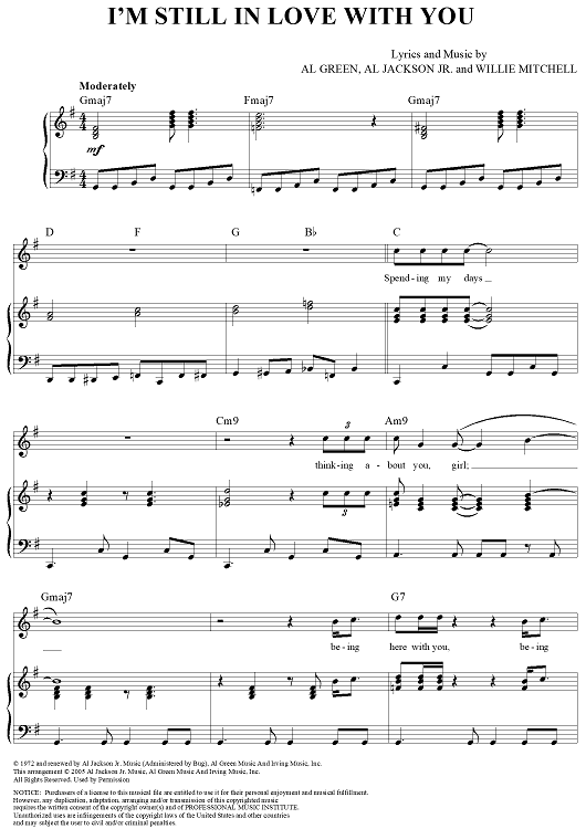Digital Sheet Music for I'm Still in Love with You by Al Green, Willie Mitchell, Al Jackson Jr scored for Piano/Vocal/Chords; id:315112