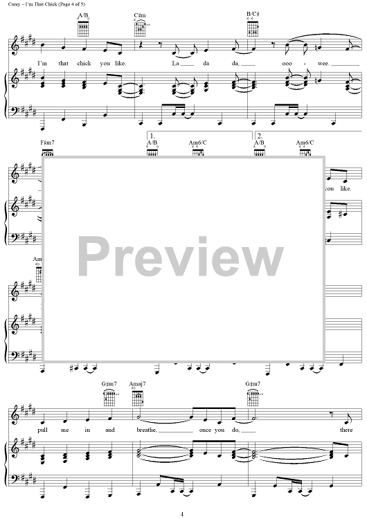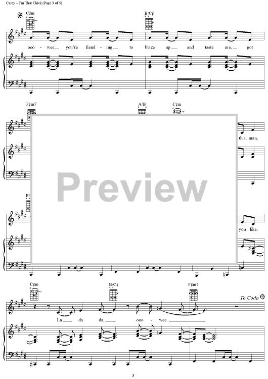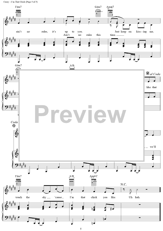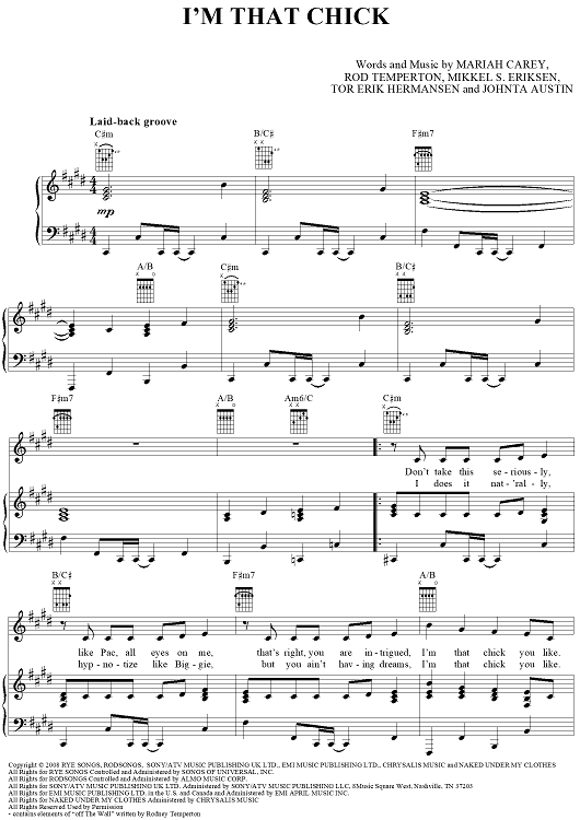 Digital Sheet Music for I'm That Chick by Mariah Carey, Rod Temperton scored for Piano/Vocal/Chords; id:409904