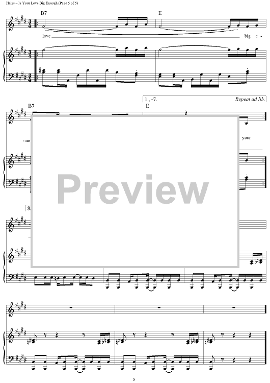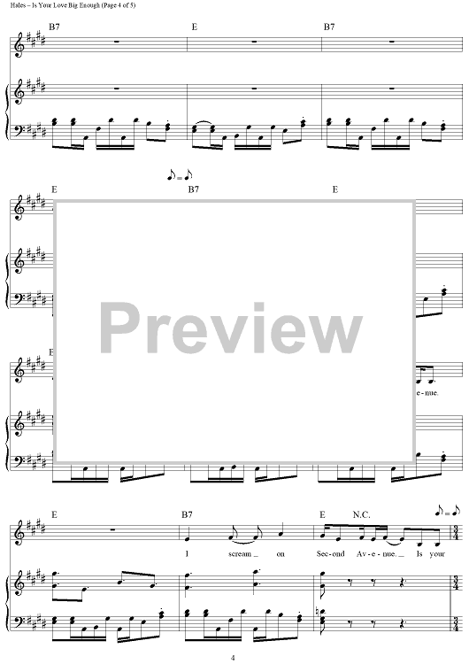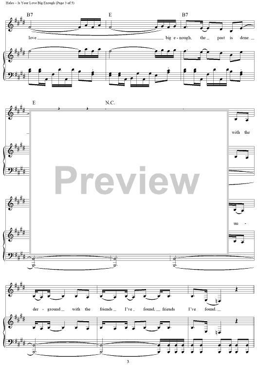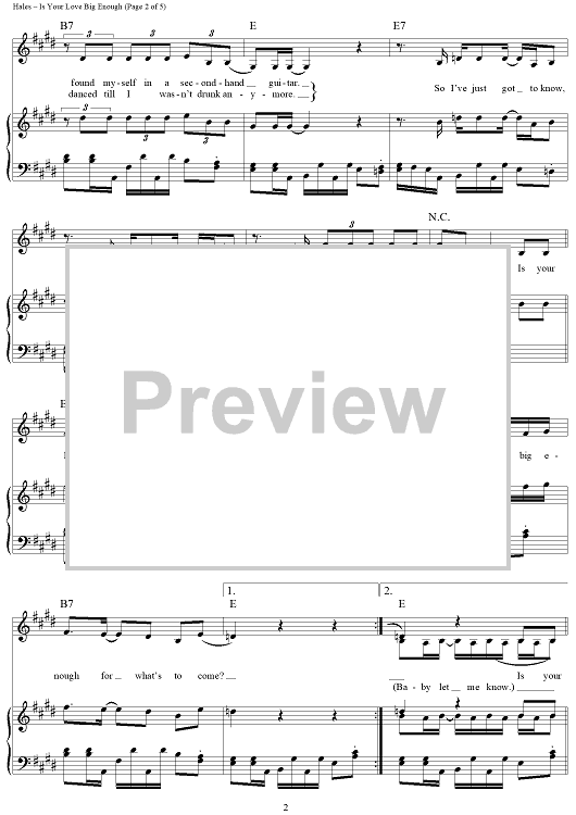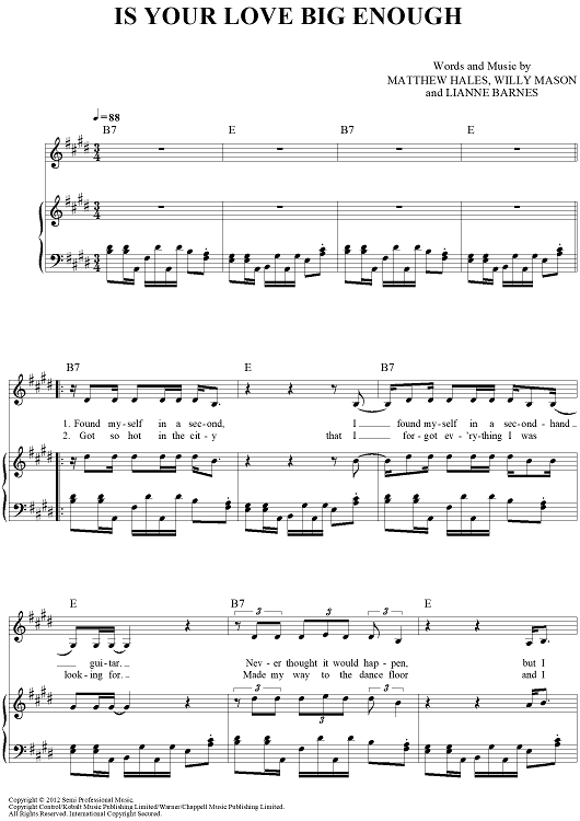 Digital Sheet Music for Is Your Love Big Enough by Matthew Nicholas Hales, Lianne Barnes, Lianne La Havas, Willy Mason scored for Piano/Vocal/Chords; id:452327