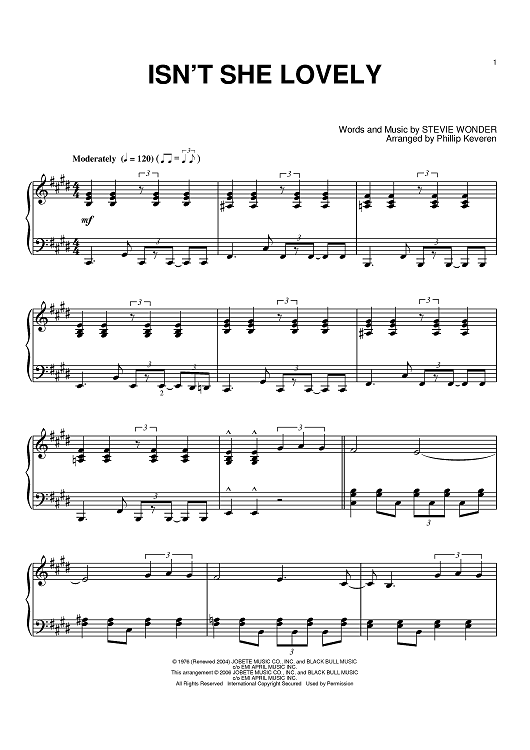 Digital Sheet Music for Isn't She Lovely by Stevie Wonder, Phillip Keveren scored for Piano; id:392207