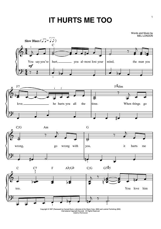 Digital Sheet Music for It Hurts Me Too by Elmore James, Mel London, Keb Mo scored for Easy Piano; id:383184