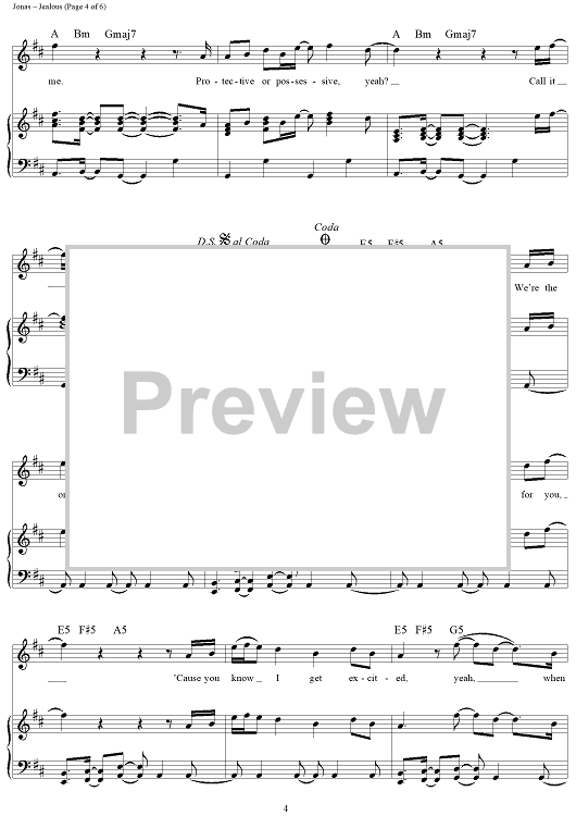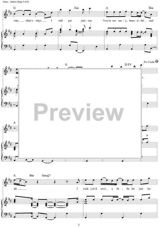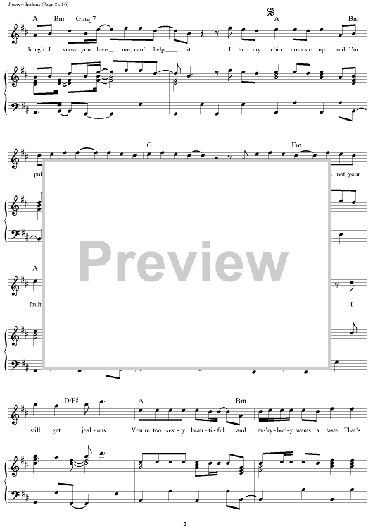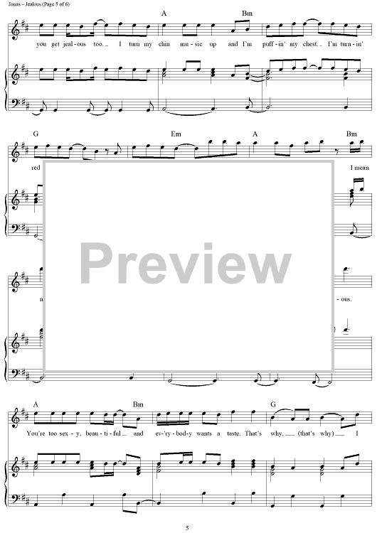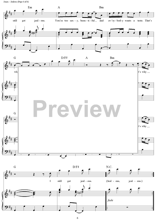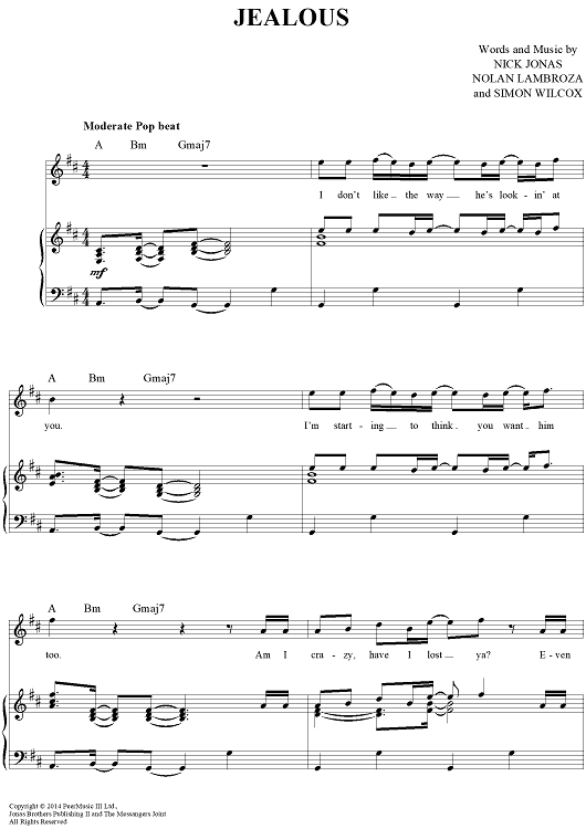 Digital Sheet Music for Jealous by Simon Wilcox, Nick Jonas, Nolan Lambroza scored for Piano/Vocal/Chords; id:444693